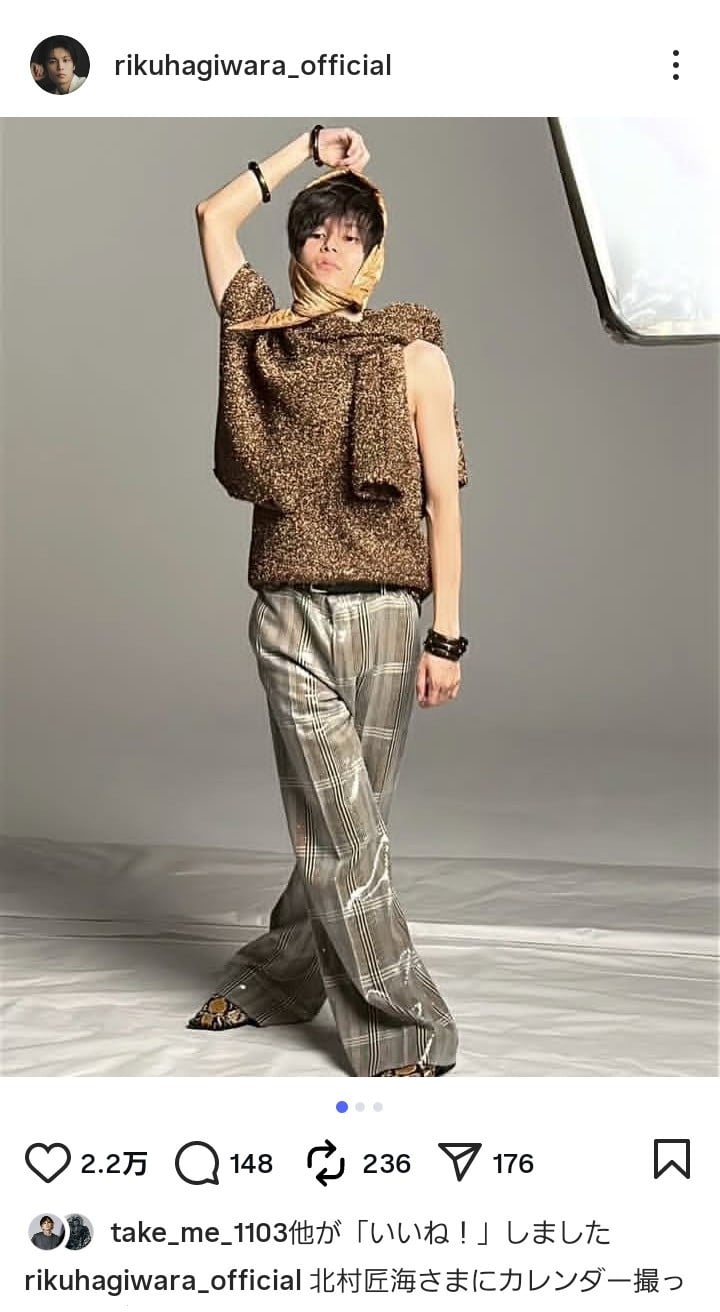 萩原利久「北村匠海さまにカレンダー撮っていただきました」(写真はインスタグラム @rikuhagiwara_official より) (2/5枚)
