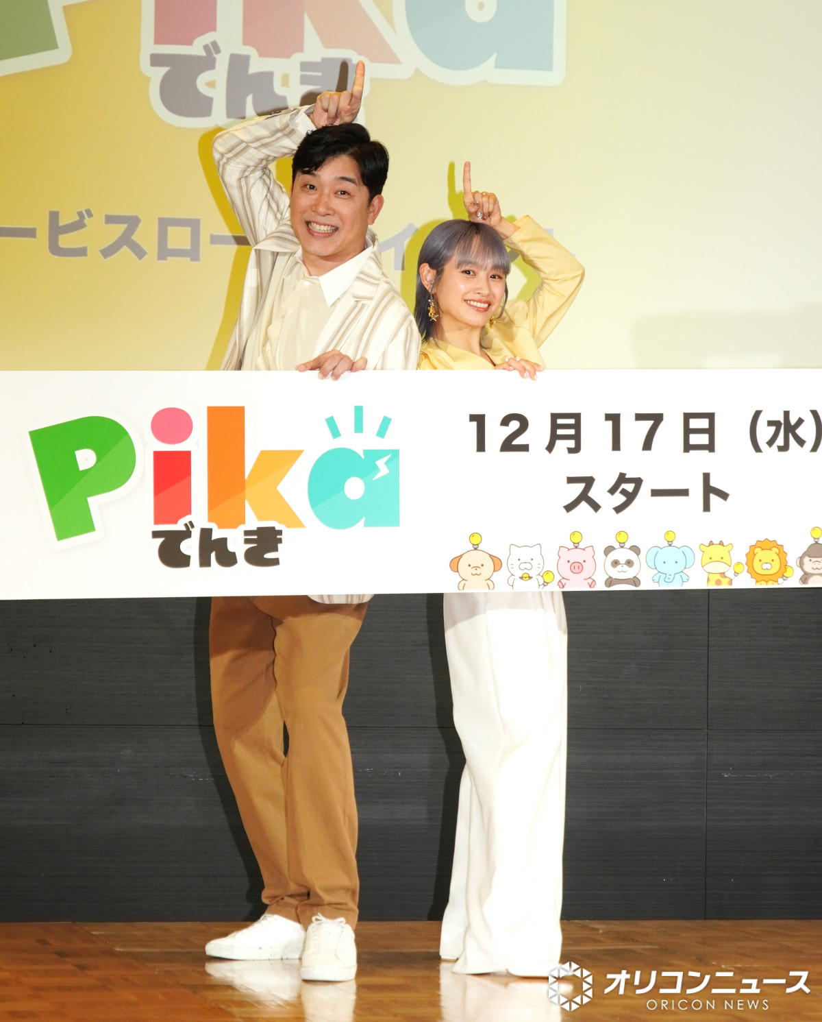 『Pikaでんき』ローンチイベントに登壇した(左から)あべこうじ、高橋愛 (C)ORICON NewS inc. (3/8枚)