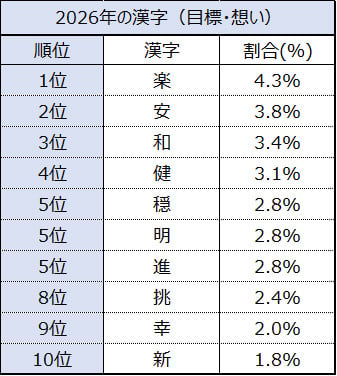 “来年の漢字”1位は「楽」 楽しく、楽な日々を願う人多数? 理由紹介「今年辛かった分楽しいことが待っているはず」