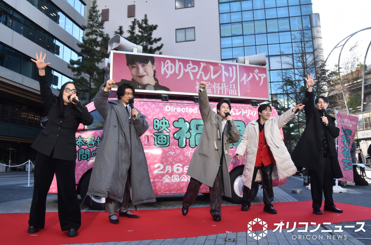 映画『禍禍女』全国行脚出発式に出席した(左から)ゆりやんレトリィバァ、斎藤工、前田旺志郎、鈴木福、九条ジョー (C)ORICON NewS inc. (12/19枚)