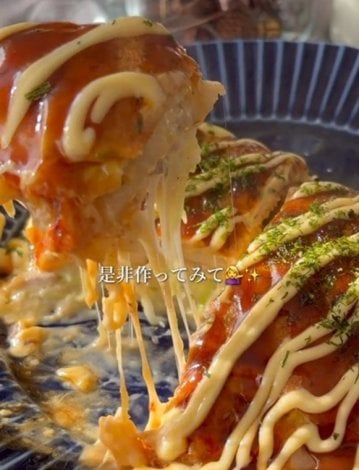 そのさんは「おもちが入っていると満足感が違う」とアピール。この動画を見たユーザーからの「チーズを乗せた後に何をかけていますか?酒?」との質問に、そのさんは「はい!お酒です。少し蒸す感じです」と返答していた。