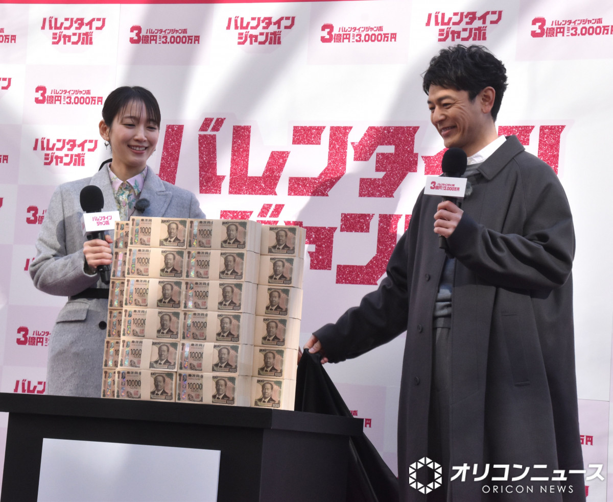 『バレンタインジャンボ宝くじ』と『バレンタインジャンボミニ』の発売記念イベントに参加した(左から)吉岡里帆、妻夫木聡 (C)ORICON NewS inc. (6/10枚)