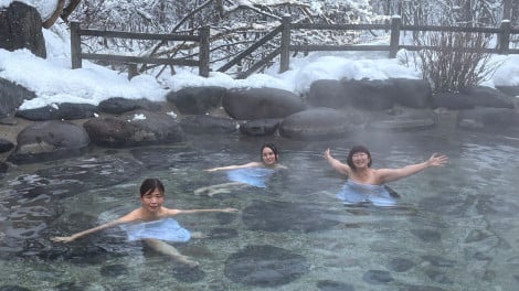 【番組カット】美しい…雪見の露天風呂を楽しむ大久保佳代子&川村エミコ&ゆめっち