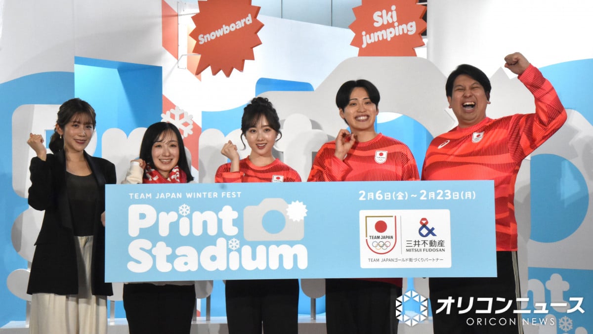TEAM JAPAN WINTER FEST『プリントスタジアム presented by 三井不動産』オープニングイベントに登壇した(左から)中川安奈、藤澤五月、本田望結、池田直人、ジャンボたかお (C)ORICON NewS inc. (4/14枚)