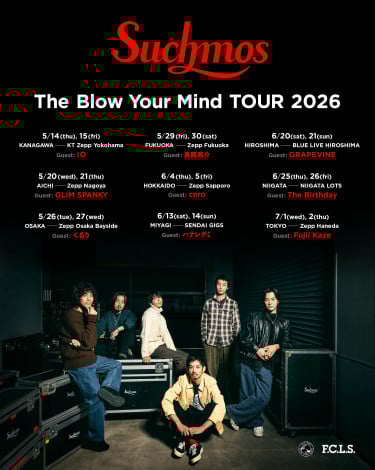 Suchmosが5月から国内9都市18公演となる『The Blow Your Mind TOUR 2026』の開催を発表。Suchmosがリスペクトするアーティストを招いて開催する対バン形式でのライブツアーとなる。