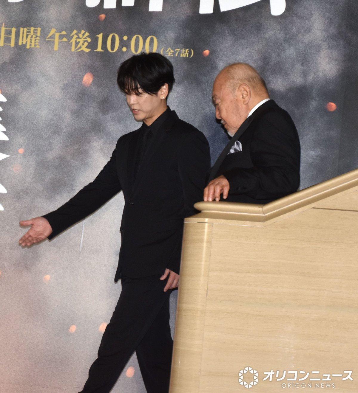 北方謙三をエスコートする亀梨和也=連続ドラマ『北方謙三 水滸伝』のジャパンプレミア (C)ORICON NewS inc. (59/59枚)