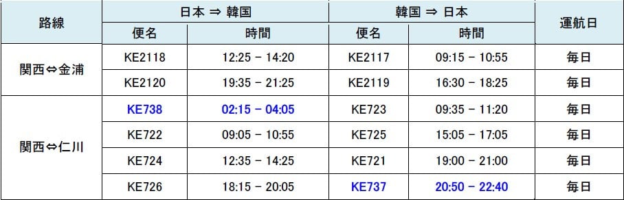 関西・ソウル 2026年夏期スケジュール (2/3枚)