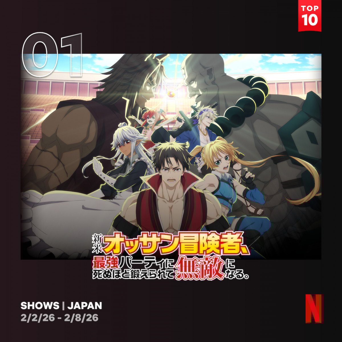 Netflix週間視聴ランキング(シリーズ)『新米オッサン冒険者』国内1位に グローバルで『呪術廻戦』『葬送のフリーレン』人気維持【2/2/26 - 2/8/26】