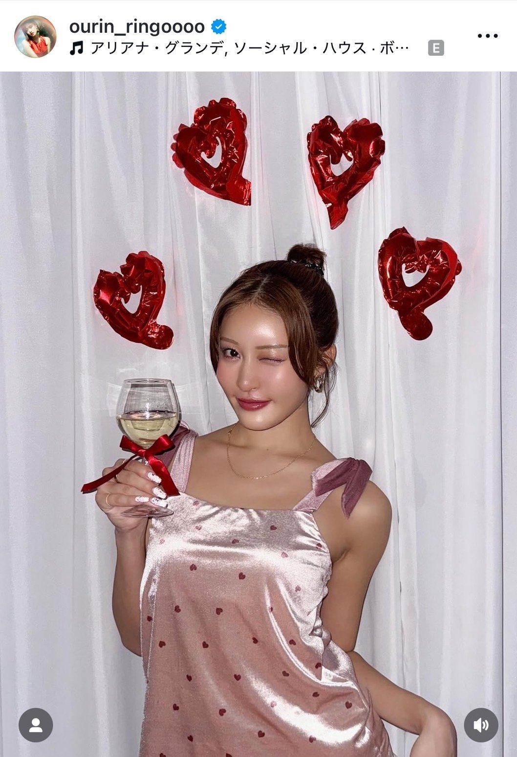 王林「VALENTINEに着たかったroom wear」(写真はインスタグラム @ourin_ringoooo より) (1/7枚)
