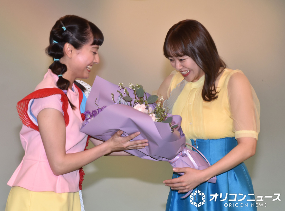 『おかあさんといっしょ』の会見に出席した(左から)アンジェ、秋元杏月 (C)ORICON NewS inc. (28/30枚)