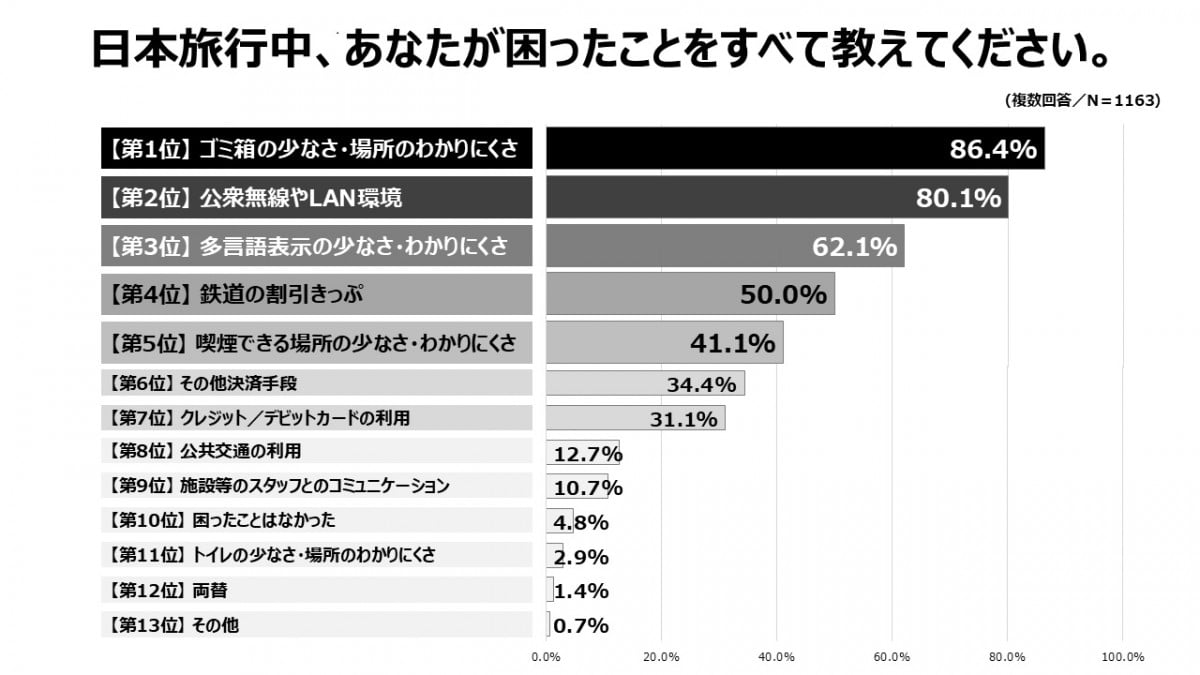 訪日客の困りごと1位は“ゴミ箱不足”、喫煙者の96%は“喫煙所不足”にも不満「ルールを遵守するための設備が欠如している」