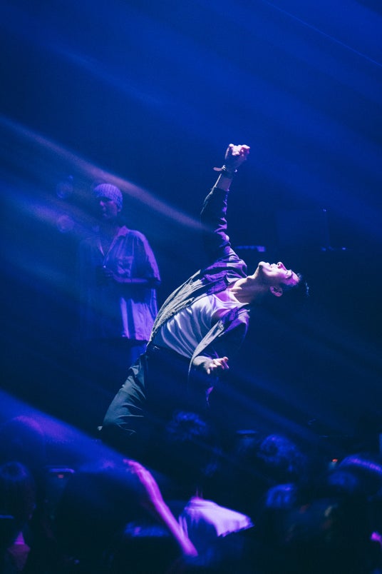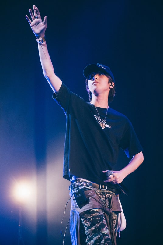 ついには感極まり、しゃがみこんで歌う姿に、ODORIのRyuta、HIROTO.、LEO、Kenshinの4人が寄り添うようにダンスで参加。「俺が作ったクルーだけど、こんなすごい人たちと踊れてパパは嬉しい」と言うと、客席からは「パパー!」と掛け声が飛ぶ。