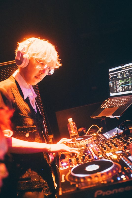 幻想的な青いライトに包まれたZ HALL。その中心に立つのは、ターンテーブルの前のAile The Shota。この日、彼は初めてのDJプレイに挑戦。慎重に手元を見つめる姿から、緊張がにじむ。