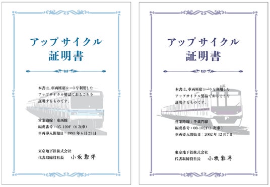 08系の座席シートを使用されていたことを証明する「アップサイクル証明書」が付きます。