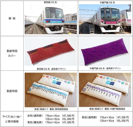 東京地下鉄株式会社(本社:東京都台東区、代表取締役社長:小坂 彰洋、以下「東京メトロ」)と、株式会社森製綿所(本社:東京都江東区、代表取締役社長:森 素道、以下「森製綿所」)は、東西線05系、半蔵門線08系で実際に使用されてきた車両の座席シート(以下「座席シート」)を活用したアップサイクル長座布団「おうちでゆるっとメトロ」を、2025年10月9日(木)10時から江東区のふるさと納税返礼品に出品いたします。