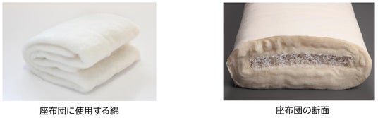・座布団の中材には、新幹線や鉄道車両の座席にも採用されている再生エラストマー構造体を芯材