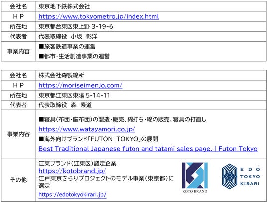 東京メトロと森製綿所は、今回の製品開発・販売を通じて「脱炭素・循環型社会の実現」に貢献してまいります。