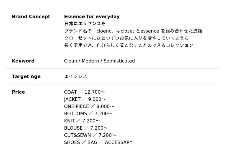 【cloenc:Brand Outline】