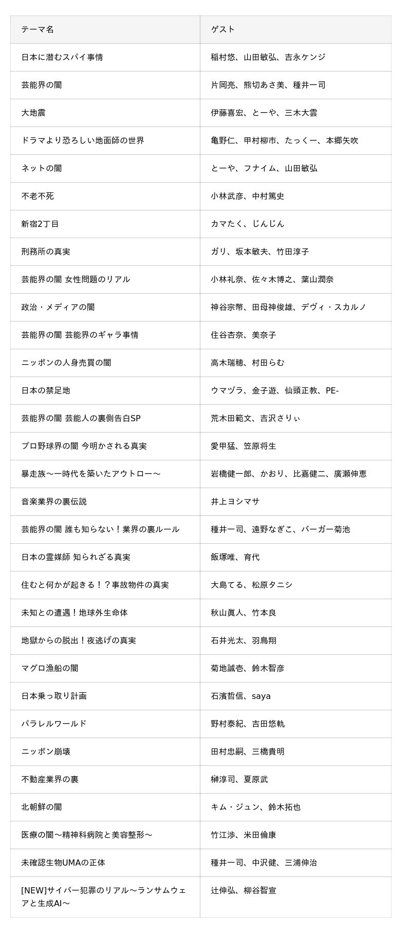 【配信中のテーマ・各回ゲスト】