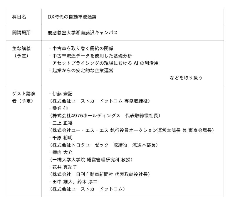 中古車流通データをテーマにした慶應義塾大学総合政策学部・環境情報学部 株式会社ユーストカードットコム寄附講座『DX時代の自動車流通論』を慶應義塾大学 湘南藤沢キャンパスで開講