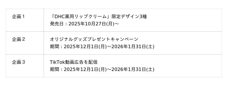 企画1:「DHC薬用リップクリーム」限定デザイン3種