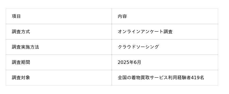 本調査では、着物買取の利用方法・業者別利用率・満足度・性別・年代別傾向など、消費者の行動と意識を多角的に分析しています。