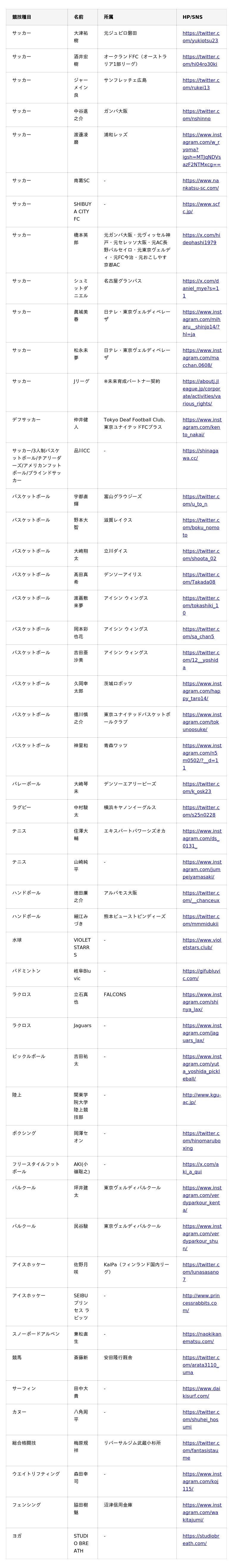 <BASE UP SPORTS サプライヤー契約一覧(現時点)>