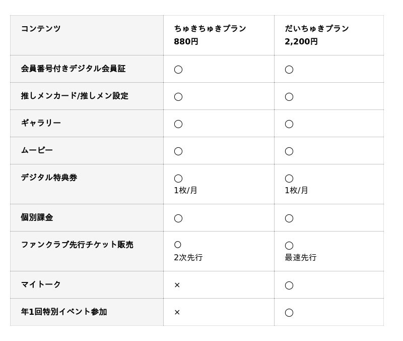 ファンクラブ会員は、ここでしか見られない物や、特典会で使用できるデジタル特典券、さらにグッズやライブチケットの先行販売など、特別なコンテンツをお楽しみいただけます。今後もファンクラブを通じて、ファンの皆さまとより近くでつながり、共に楽しい時間を創り上げてまいります。