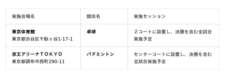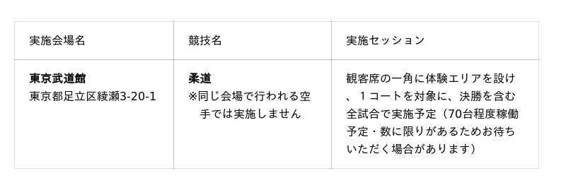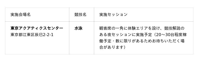 また、卓球、バドミントン、柔道、水泳の各競技会場では、最新のデジタル技術を活用した観戦体験を実施します。