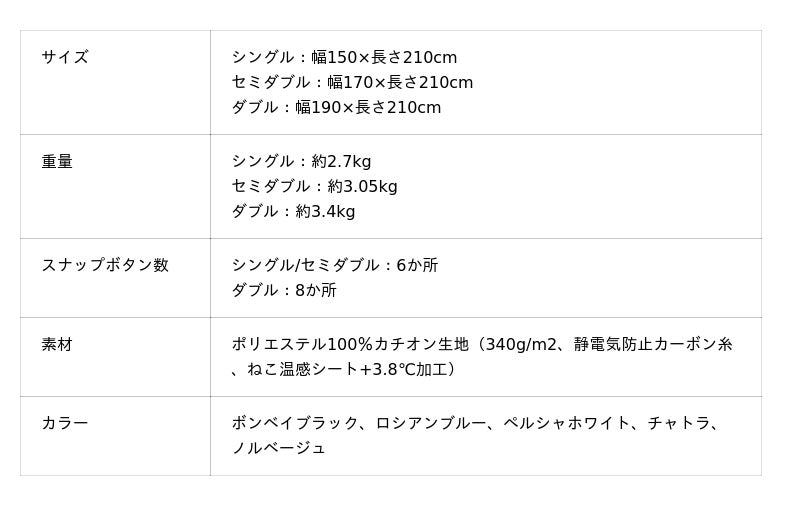 本製品は2way仕様となっており、春秋は2枚合わせ毛布として、冬は掛布団カバーとして使用することにより、より暖かく、オールシーズン快適に使えるようになっています。また、カバーとして使用する際はスナップボタンで掛布団と固定することができ、取り付けも簡単になっており、使用する中で掛布団とカバーがずれてしまった場合も簡単に直すことができるように角に2か所スリットを設けています。