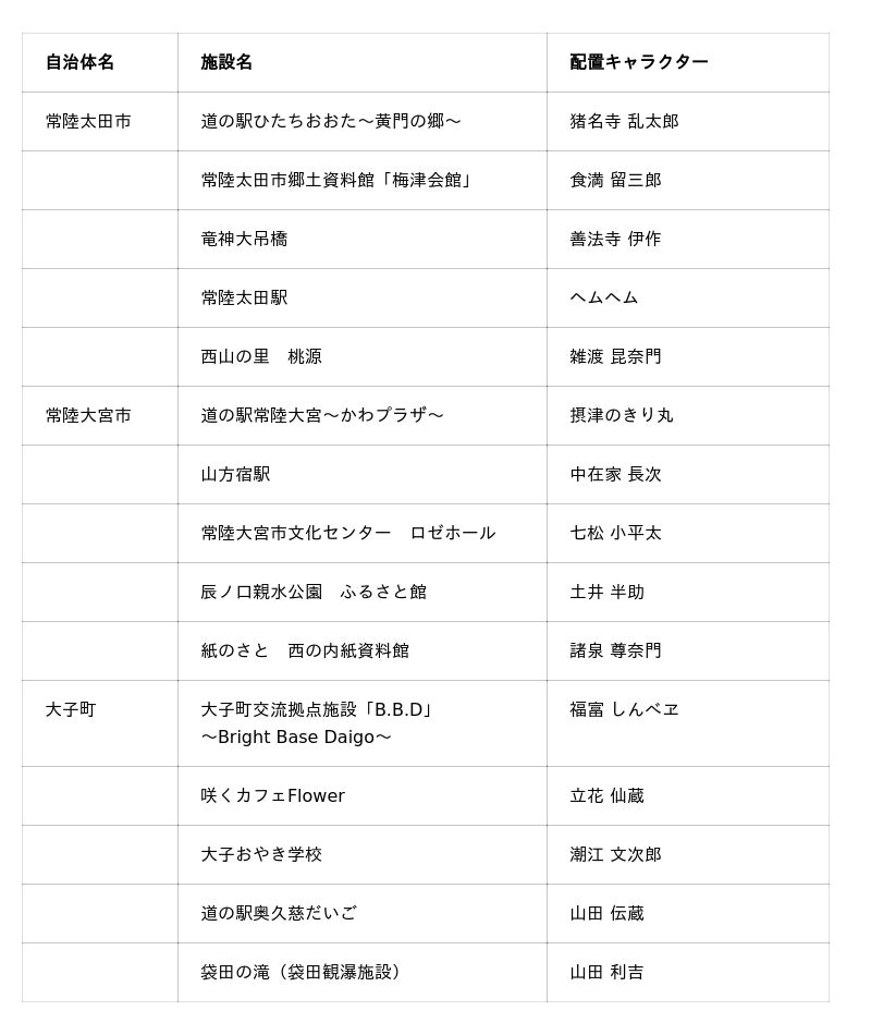 実施内容:ARフォトラリー、コラボフード、コラボ宿泊プラン、ARスポットを巡るツアーの実施、JR水郡線でのコラボ企画(ラッピング列車の運行、キャラクターによるナレーション放送、水郡線限定パッケージのうまい棒配布)