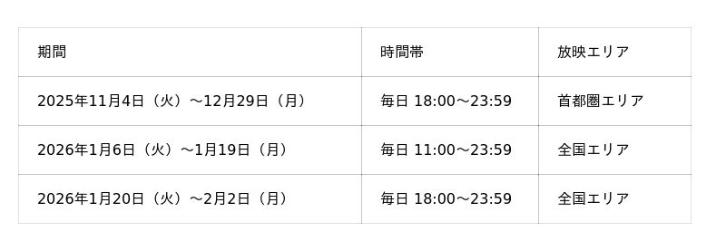 放映期間 :2025年10月21日(火)〜2026年2月2日(月)