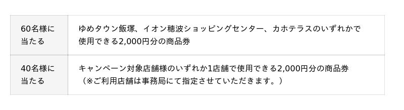 キャンペーン期間終了後に抽選で100名様に飯塚市の魅力的な賞品をプレゼント!