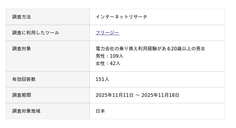 - 乗り換えの理由と、乗り換える電力会社を選ぶ際に最も重視したポイントのどちらも「電気料金を安くしたかった」(47.68%)、「電気料金の安さ」(56.95%)がトップとなり、利用者の最大の動機が電気代の節約にあることが明確になった。