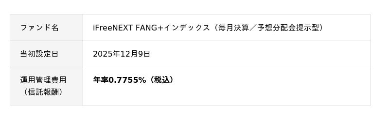 このたび、大和アセットマネジメント株式会社は、2025年12月9日に「iFreeNEXT FANG+インデックス(毎月決算/予想分配金提示型)」(以下、「当ファンド」)を設定します。