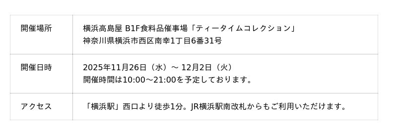 2025年11月26日から、横浜高島屋B1F食料品催事場「ティータイムコレクション」に期間限定OPEN