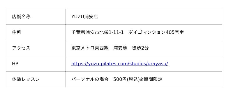 浦安駅に、ココロとカラダの健康美をサポートするピラティスレッスンを提供しているYUZUが通算66号店目を12月にOPEN!