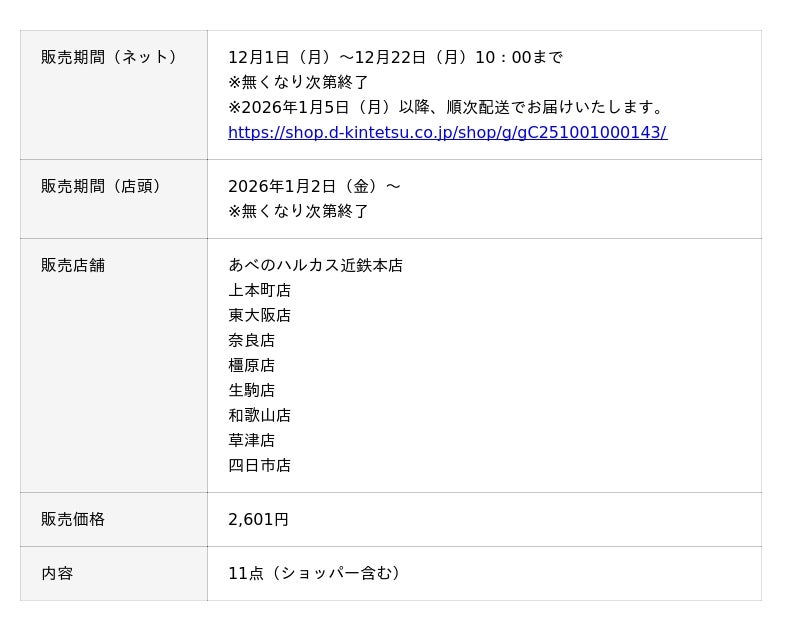 【近鉄百貨店】「ペコリシャス 2026近鉄限定福袋」