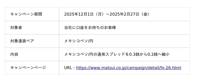 【メキシコペソ/円】スプレッド縮小キャンペーン詳細
