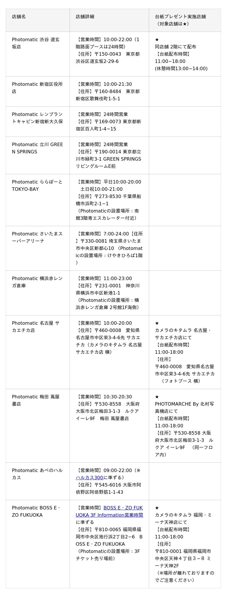 ※フォトブースの所在地と台紙引き換え店舗が異なる場合ございますので、ご確認の上ご来店ください。