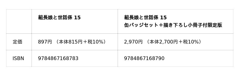 組長娘と世話係 15 缶バッジセット+描き下ろし小冊子付限定版