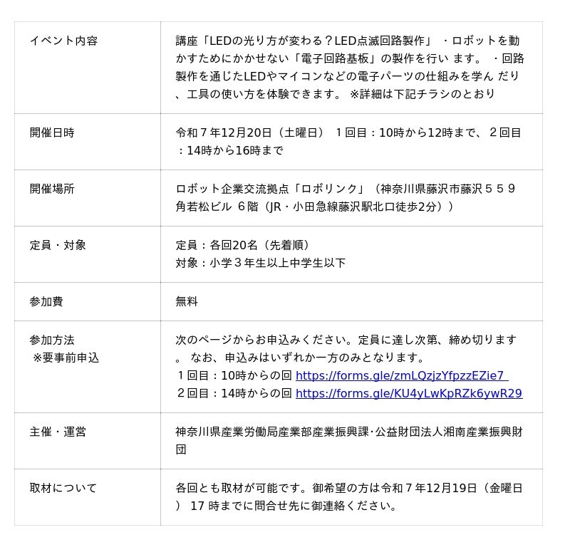 令和5年度に「かながわ学生ビジネスアイデアコンテスト」に参加し、現在、起業家創出拠点 「HATSU 鎌倉」において起業支援を受けている起業家が、県のロボット企業交流拠点「ロボリンク」において、子ども向けロボット体験教室を実施することになりましたので、お知らせします。