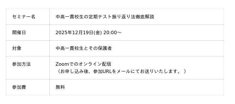 〜指導実績500校以上のプロ講師が、多くの生徒が陥る「定期テストの受けっぱなし」からの脱却法を伝授。2025年12月19日(金) 20:00よりオンラインにて。〜