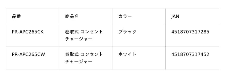 多摩電子工業株式会社(本社:神奈川県川崎市、代表取締役 執行役員社長 杉山一)は、巻取り式USB-Cケーブル内蔵+USB-Cポート搭載、最大65WのUSB Power Delivery(PD)対応のUSB充電器(PR-APC265CK、PR-APC265CW)を、2025年12月より各ECストアにて発売開始いたしました。カラーはブラックとホワイト、価格は5,980円(税込・送料込)です。