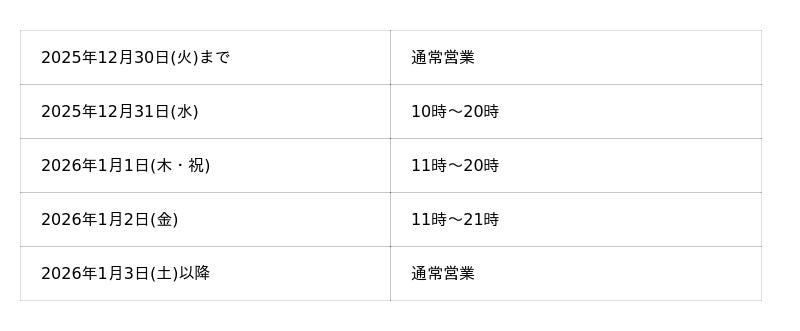 ※年末年始の営業時間につきましては、下記の通り変更させていただきます。