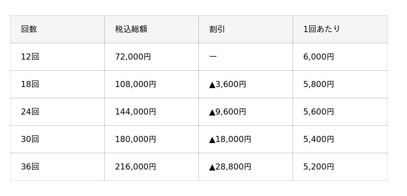 ■ 3か月パッケージ(12〜36回)、前払い制