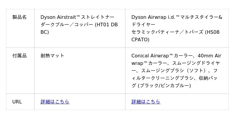その他の対象製品、詳細は、ダイソン公式オンラインストアをご確認ください。