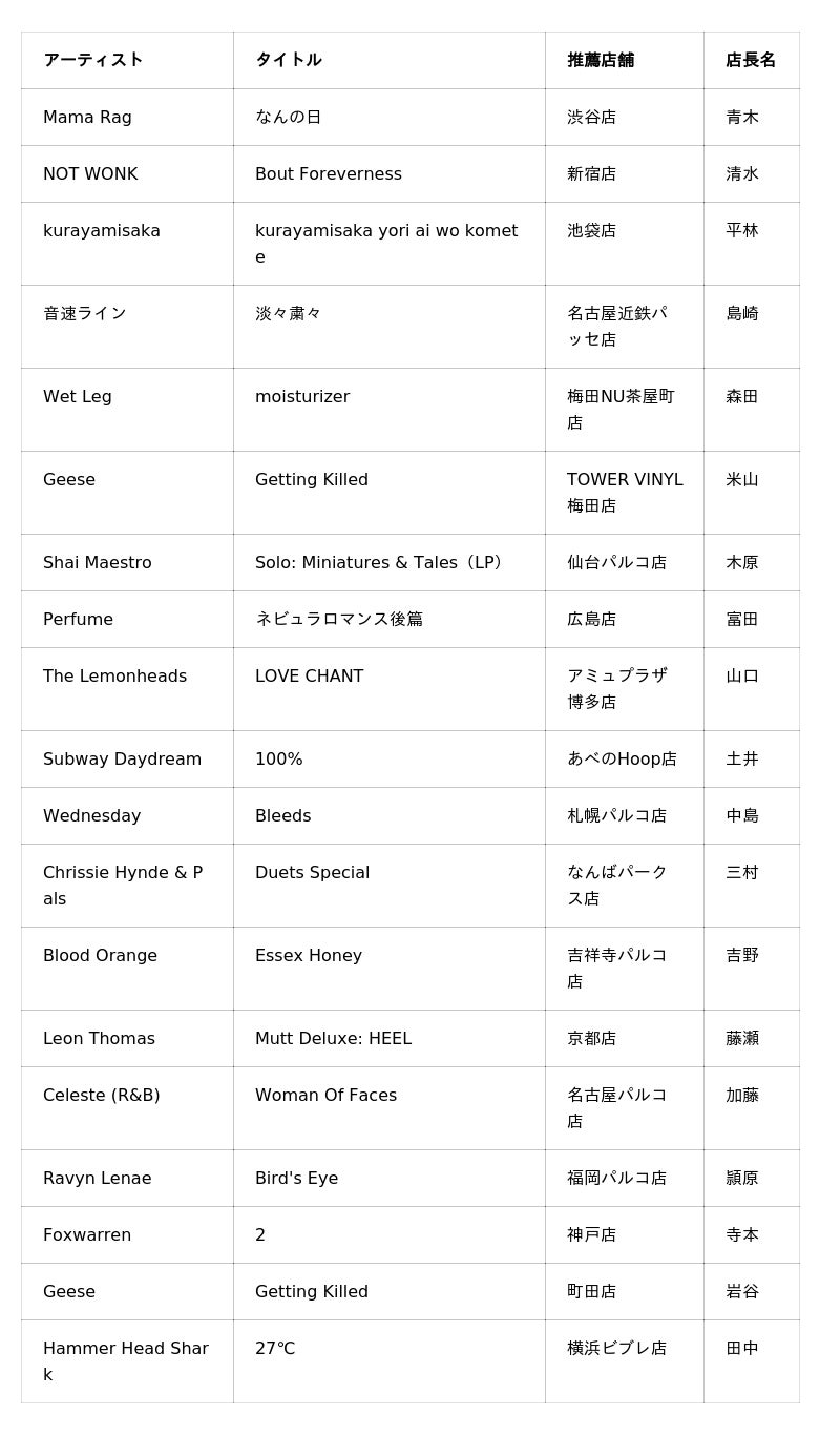 タワレコ店長19名が選ぶ、絶対に聴くべき1枚「マスターズチョイス」2025年ベスト・ディスク