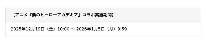 まもなく始まるアニメ『僕のヒーローアカデミア』とのコラボをどうぞお楽しみください。