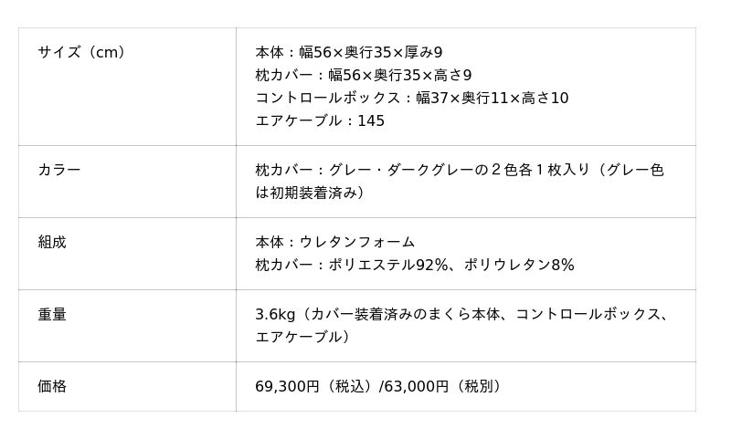【特長】・いびきを検知しエアバッグで頭の向きを変える